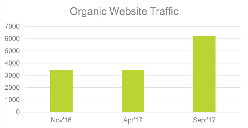 Finally, our SEO and organic search marketing efforts proved very successful and we observed a significant increase in number of conversions the client received from organic traffic. The conversions increased by 57% between 26 November 2016 and 30 September 2017.