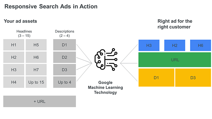 Responsive search ads could show up to three 30-character headlines and two 90-character description lines.